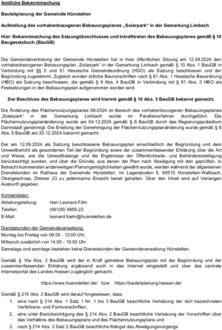 Vorhabenbezogener Bebauungsplan „Solarpark“ Limbach