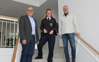 v.l.n.r. Bürgermeister Jan Kraus, Schutzfrau Jeanette Schick und Fachbereichsleiter Ordnungsamt Jens Fischer
