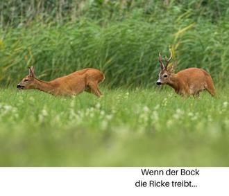 Wenn Ricke oder Schmalreh bereit sind, kann die Paarung beginnen. Der Bock treibt dann das weibliche Stück vor sich her, es geht über Stock und Stein, durch den Wald und über die Wiesen, egal, ob am Tag oder in der Nacht.