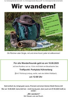 | Gerne versuchen wir, für Sie eine Mitfahrgelegenheit zu organisieren. Bitte melden Sie sich ggf. bis Donnerstag 18:00 Uhr im Gemeindebüro. | |