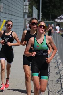 Auch im Sportlichen setzt aus Sicht der TriHünen von der Hühnerkirche vor allem Tom Borst zum Ende seiner Landeskaderzugehörigkeit für den Hessischen Triathlonverband beim Einzelrennen am Samstag ein fettes Ausrufezeichen. Mit Kontakt zur Spitze verlässt er den Schleichersee nach 2 Runden (750m/10:57min) als Elfter und setzt auf den 20 Radkm (27:42min = 43,3 km/h im Mittel) immer wieder Attacken, um den Abstand zum enteilten Trio zu verkürzen. Beim zweiten Wechsel lässt Tom ein bisschen Zeit liegen und verpasst die vordersten Plätze. Mit der fünftbesten Laufzeit (15:52min / 5km) im Feld macht er jedoch wieder Plätze gut und läuft auf Rang sechs ins Ziel. Nach sechs Jahren Kaderzugehörigkeit kann der junge Athelt stolz auf sein bestes DM-Ergebnis, eine schöne und erfolgreiche Zeit im Hessendress zurückschauen.