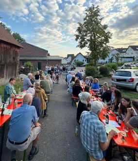 Der gemütliche Abend fand bei perfektem Wetter, leckerem Essen („wilde“ Würste vom Grill, koreanischem Karottensalat, italienischem Nudelsalat, spanischem Gazpacho, schwäbischem Kartoffelsalat und hessischem Handkäs) und gut gekühlten Getränken (von Aperol Spritz über Bier und Wein bis zu stillem Wasser wurde alles geboten) großen Anklang. So wurde bis spät am Abend beisammengesessen, geplaudert, gut gegessen und getrunken.