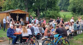 Am 26. Juli wurde zu „Grill & Chill“ am Weinstand eingeladen. Nachdem erst einmal alle mit Essen und Trinken versorgt waren, ging es mit dem gemeinsamen Einsingen los, mitsamt all den Lockerungs- und Stimmübungen, die sich Chorleiterin Kirsten Schierbaum einfallen lässt. Das war für manche Anwesenden vermutlich etwas skurril, es wurde jedenfalls viel geschmunzelt. Im Anschluss trug Cantella mit Schwung einige Lieder vor und animierte viele der Zuhörer mit bekannten Gassenhauern zum Schunkeln und Mitsingen.