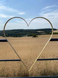 Wir freuen uns sehr, für Sie ein ganz besonders "herziges" Plätzchen in Hünstetten geschaffen zu haben: Einen Foto-Punkt in Herzform, den Sie am Hünstetter Kulturpfad an der "Alten Poststraße" in Wallbach finden (Wanderroute 1 und 6).