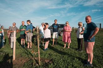 Gemeinsam ging man die im letzten Herbst gepflanzten Obst-und Nussbäume ab und Torsten Puff, zertifizierter Landschaftsobstbauer, erzählte allerlei Wissenswertes zu dem seltenen Speierling, der für eine gute Apfelweinherstellung unerlässlich ist.