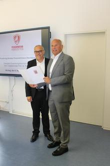 Der Hessische Minister für Inneres, Sicherheit und Heimatschutz, Herr Prof. Dr. Roman Poseck, überreichte heute im Rahmen einer kleinen Feierstunde dem Bürgermeister Jan Kraus einen Fördermittelbescheid in Höhe von 160.875 EUR für den Neubau des Gerätehaus in Oberlibbach.