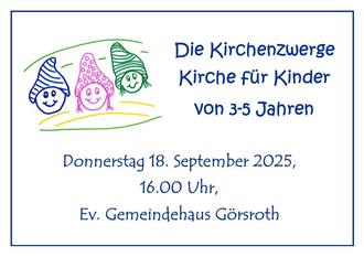 | 16:00 Uhr | Kirchenzwerge im Ev. Gemeindehaus Görsroth |