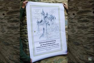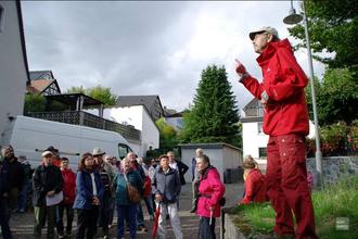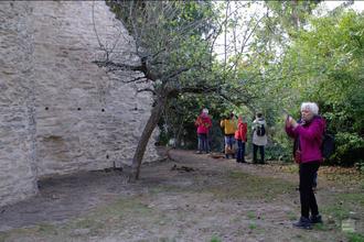 Weit über 70 Teilnehmer starteten am Parkplatz des DGH Wallrabenstein in Richtung Burg Wallrabenstein. Hier hat der Planer des Hünstetter Kulturpfads Volker Denzer einen Vortrag zur „Entstehung der Burg Wallrabenstein“ sowie einen Vortrag zur „Hochzeit und Ehe auf einer Burg im Mittelalter“ gehalten.