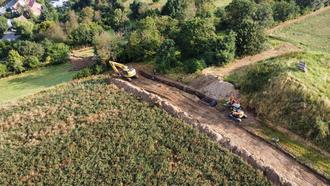 Die neue Leitung hat eine Gesamtlänge von rund 325m und verläuft durch das topographisch sehr anspruchsvolle Gebiet "Am Heckenberg". Sie soll nach Fertigstellung Strinz mit Trink- und Löschwasser versorgen.