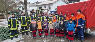 Am 13.01.2024 fand in allen Hünstetter Ortsteilen wieder die Weihnachtsbaumsammelaktion statt. Auch die Wallbacher Feuerwehr war mit Mitgliedern der Einsatzabteilung, der Jugendfeuerwehr und der Kinderfeuerwehr mit dabei. Nach dem Treffen am Wallbacher Gerätehaus starteten wir um 10 Uhr mit zwei Traktoren und dem Feuerwehrbus samt Anhänger.