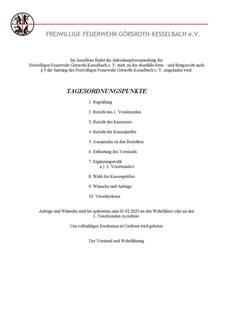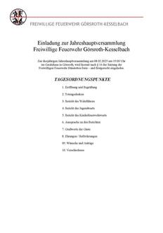Einladung zur Jahreshauptversammlung Freiwillige Feuerwehr Görsroth - Kesselbach