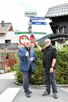 Neukirchner Bürgermeister Andreas Schweinberger und Hünstetter Bürgermeister Jan Kraus an der Hünstettner Straße in Neukirchen