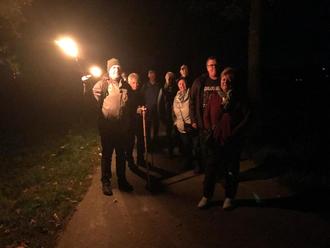 Der 1. Vorsitzende leuchtet den Heinweg aus.