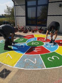 Auch die Kita „GROß+klein“ hatte sich für dieses tolle Projekt angemeldet und sich sehr gefreut, dass auch sie Unterstützung bekamen. So kamen am Donnerstag, den 19.09.2024 3 Süwag Mitarbeiter, um in der Kita einen Gruppenraum zu streichen sowie unserer beliebten Fahrbahn und Schnecke im Garten wieder neue Farbe zu schenken.
