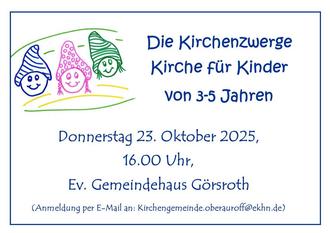 | 16:00 Uhr | Kirchenzwerge im Ev. Gemeindehaus Görsroth |
