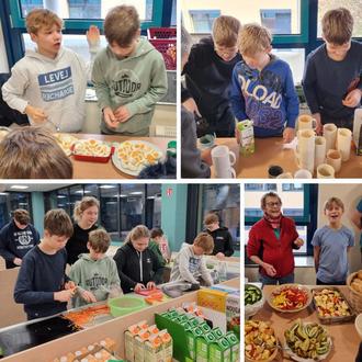 Am 27. Oktober herrschte bereits früh am Morgen geschäftiges Treiben in der Aula der IGS Wallrabenstein: Schon um 7 Uhr trafen sich fleißige Helferinnen und Helfer, um das gemeinsame Frühstück vorzubereiten. Unterstützt wurde die Aktion von der Schülervertretung und dem Fairtrade-Steuerkreis der Gemeinde. Auf dem Programm standen das Schnippeln von Gemüse, das Kochen und Schälen von Eiern, das Aufschneiden von Brötchen sowie das Herrichten von Geschirr und Lebensmitteln für das Buffet.