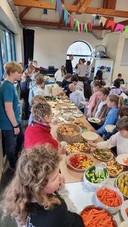 Trotz längerer Schlangen am Buffet blieb die Stimmung fröhlich – die Kinder warteten geduldig und freuten sich über das reichhaltige Angebot.