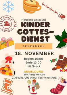 | 10.00 Uhr | Kindergottesdienst im Gemeindehaus Beuerbach |