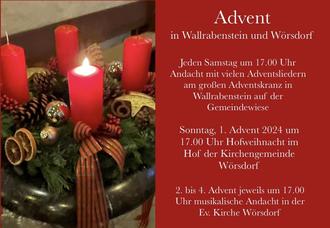| • 17.00 Uhr | Andacht am Adventskranz in Wallrabenstein |
