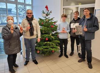 v.l.n.r. Milli E. Paul (Fairtrade Steuerungsgruppe), Bürgermeister Jan Kraus, Schüler der IGS Wallrabenstein (Fairtrade Schule), Rainer Gießing (Fairtrade Steuerungsgruppe)