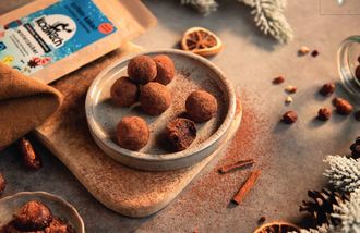 - Die Kugeln nun in Koawach wälzen - und fertig! Leckere Power für kalte Wintertage.