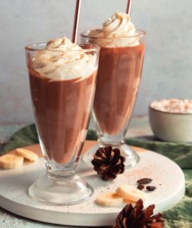 * Perfekt für die kalte Jahreszeit! Die Banane schälen und gemeinsam mit dem Spekulatius und dem Kakao zu einem cremigen Shake mixen und in eine schöne Tasse oder ein schönes Glas umfüllen.