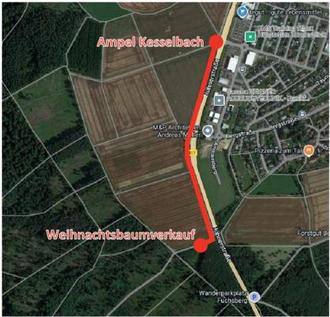 Der Verkauf findet an der Weihnachtsbaumkultur zwischen Oberlibbach und Kesselbach statt. Hier sind vor allem Normann-Tannen gewachsen