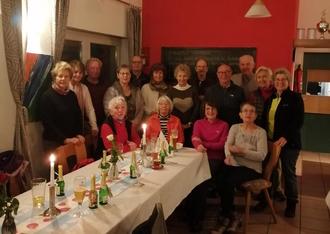 Ein windiger, nasser Abschluss unserer Wanderungen. 12 Wanderer trafen sich mutig um 14.00 Uhr vor unserer Vereinsgaststätte. Zu einem hatten wir die Hoffnung auf trockenes Wetter und natürlich wollte keiner unsere Planerin Edda enttäuschen. Es gibt ja im Prinzip kein schlechtes Wetter nur falsche Kleidung. Aber wir sind ja versierte Wandersleute und dementsprechend gekleidet. Am Tennisplatz hoch und nach rechts in den neu angelegten Weg. Auf der Allee dann doch ein paar Tropfen, aber noch okay. Richtung Wellers Mühle etwas mehr Tropfen. Aber gut wir wussten ja bald sind wir bei Udo und bekommen warme Getränke. Spätestens hier überlegten wir abkürzen oder den geplanten Weg weiter?! Ich denke letztendlich war es die Gruppendynamik die uns veranlasste planmäßig weiter zugehen. Fazit war, das der Wind und der Regen immer stürmischer wurde. Wir waren froh, als wir endlich im schwarzen Hahn waren Nach dem obligatorischen Gruppenbild ging es zum gemütlichen Teil mit Essen, Trinken und Erzählen über. Erfreulich war das Helga wieder mitwandern konnte, Gertrud immer den Weg von Esch auf sich nimmt.. Nach einem kleinen Präsent in Form von einem Pikkolo und einem Niklaus war der letzte Wandertag offiziell vorbei. Im Februar ist unsere Sitzung und wir werden dann die Termine für das kommende Jahr festlegen und veröffentlichen.