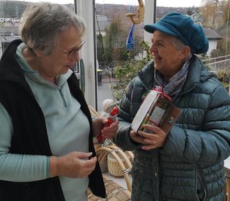 Andererseits wurden in diesem Jahr die Leiterinnen der Seniorenclubs in Hünstetten aufgesucht und ein Schoko-Nikolaus an die Leiterinnen sowie ein Paket Fairtrade-Kaffee und kleine Fairtrade-Schoko-Täfelchen für das nächste Seniorentreffen überreicht. Hiermit sollte einerseits die wertvolle ehrenamtliche Arbeit in den Seniorenclubs gewürdigt werden und andererseits auf die Bedeutung der fairen Produktion bei Kakao und Kaffee hingewiesen werden.