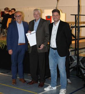 Wolfgang Gerhardt aus Wallrabenstein wurde vom Bürgermeister Jan Kraus und vom Vorsitzenden der Gemeindevertretung Marco Kohde für seine über 46 Jahre ehrenamtliche Tätigkeit im Ortsgericht IV Wallrabenstein geehrt und erhielt die Goldene Ehrennadel.