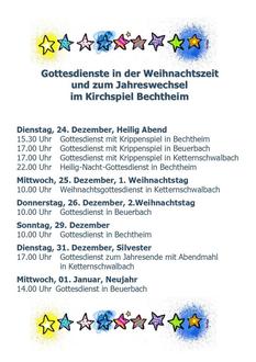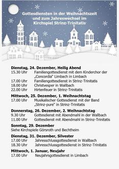 | Die Gottesdienste an Weihnachten und zum Jahreswechsel entnehmen Sie bitte den Anzeigen | |