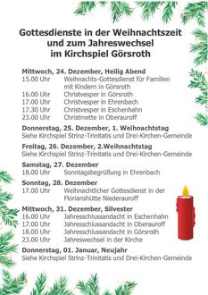 | 16:00 Uhr | Gottesdienst mit Weihnachtsspiel in Görsoth |