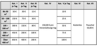 3. Der Vortag des Veranstaltungstages ab 22.00 Uhr und der Folgetag bis 12.00 Uhr werden nicht als gebührenpflichtiger Tag berechnet. Wird darüber hinaus die Belegung einer Gemeinschaftseinrichtung für den Aufbau oder Abbau notwendig, sind 25 % der jeweiligen Tagesgebührensätze zu berechnen.