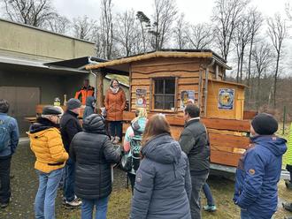 Hier wartete Thorsten Puff aus Oberlibbach mit seiner Frau Conny bereits mit kulinarischen Köstlichkeiten auf die Wandergruppe. Thorsten keltert eigene Apfelweinköstlichkeiten („Thorsten’s Stöffche - ein ehrlicher Schoppen“) und Conny untermalt diese mit leckeren Variationen rund um den Handkäs oder selbstgemachten Suppen. Und so wurden gegen den Durst und zum Aufwärmen der heiße Apfelwein „Winterzauber“ bzw. Äppler und Apfelsaft angeboten. Zur Stärkung gab es Handkäs mit Musik, eine selbstgemachte Kartoffelsuppe mit oder ohne Würstchen oder einfach nur Pfefferbeißer mit Brot.
