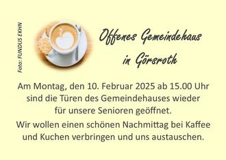 | 15:00 Uhr | Offenes Gemeindehaus in Görsroth |