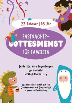 | 16:00 Uhr | Fastnachtsgottesdienst für Familien in der Kita Eschenhahn |