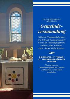 | 19:00 Uhr | Gemeindeversammlung im Ev. Gemeindehaus Görsroth |