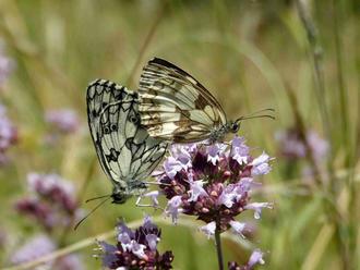 Schachbrettfalter bei der Paarung auf Wildem Majoran. (Bildautor: LPV)