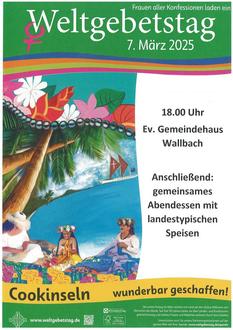 | 18:00 Uhr | Weltgebetstag im Ev. Gemeindehaus Wallbach |