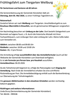 Frühlingsfahrt zum Tiergarten Weilburg für Seniorinnen und Senioren ab 60 Jahren