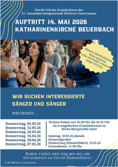 19:30 Uhr Probe Projektchor, Ev. Gemeindehaus Strinz-Margarethä