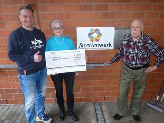 Anlässlich der Feier zu ihrem 80. Geburtstag überreichte Barbara Czermin (1. Vorsitzende der Sängervereinigung Breithardt), dem Werkstattleiter des „Facettenwerks“ Herrn Keller, eine Zuwendung in Höhe von 1.000,00 €.