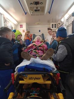 Zu dieser gemeinsamen Übung kam Kenny vom ASB mit dem Rettungswagen.