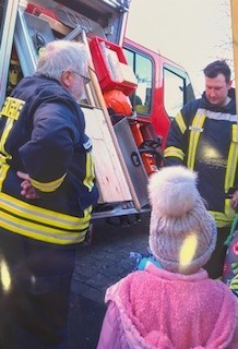 Der Besuch der Feuerwehr war nicht nur spannend, sondern auch sehr lehrreich. Die Kinder haben viel über den richtigen Umgang mit Feuer und das Verhalten im Notfall gelernt. Gleichzeitig haben sie die Feuerwehr als Helfer kennengelernt und keine Angst mehr vor den maskierten Feuerwehrleuten mit ihren Atemschutzgeräten.