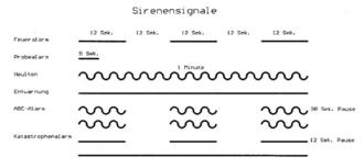Eine symbolische Darstellung der unterschiedlichen Sirenensignale ist nachfolgend abgedruckt.