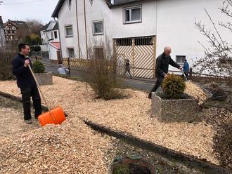 Durch Eure Mithilfe wurde der Geräteraum im Gemeindezentrum gereinigt und aufgeräumt, die Sockel der Speckmäuse betoniert, das Brückengeländer entrostet und neu gestrichen, die Pflanzrabatte am grünen Raum und „uff de Linn“ gereinigt und neu verfüllt. Unser Dank richtet sich auch an die Unterstützer der Mittagspause, es hat lecker geschmeckt. Vielen Dank sagt der Ortsbeirat auch dem Bauhof für die Unterstützung.