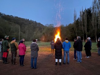 Rund 30 Gäste aus Hennethal, Panrod, Strinz-Margarethä und Strinz-Trinitatis erfreuten sich am Ostersonntag um 6 Uhr morgens an einem sehr schönen und stimmungsvollen Osterfeuer am Sportplatz in Hennethal.