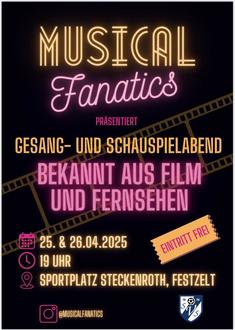 Die Musical Fanatics des SV Steckenroth laden am letzten Aprilwochenende ins Festzelt nach Steckenroth ein. An gleich zwei Abenden werden in diesem Jahr dann alle Besucher bei Gesang und Schauspiel verzaubert. Nach dem großen Erfolg im vergangenen Jahr erwartet der Verein und seine Musicals wieder viele Gäste, die erneut einen unvergesslichen Abende erleben möchten.