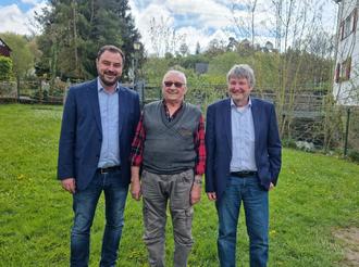 Bürgermeister Daniel Bauer und Ortsvorsteher Peter Unglaube überbrachten dem Jubilar Manfred Schwenk am 20. April die Glückwünsche der Gemeinde Hohenstein und des Ortsbeirates Hennethal zum 80. Geburtstag.