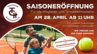 Am Sonntag, 28.04. findet ab 11.00 Uhr auf der Clubanlage in Holzhausen ü.A. die alljährliche Saisoneröffnung statt. Hierzu lädt der Vorstand alle Mitglieder mit Familie sowie tennisinteressierte Hohensteinerinnen und Hohensteiner herzlich ein. Es findet an diesem Tag ein Schleifchenturnier für Jung und Alt sowie ein Schnuppertraining statt.
